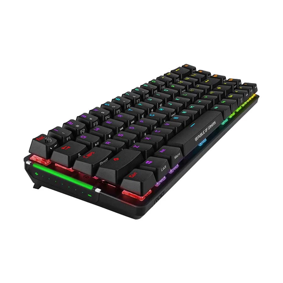 The ROG team aimed to provide a compact keyboard without compromise, masterfully incorporating arrow and navigation keys into a 65% keyboard layout. And at just 306 mm in length, ROG Falchion is almost the same size as a 60% keyboard. It gives you all the functions of a normal keyboard without taking up much desktop space.