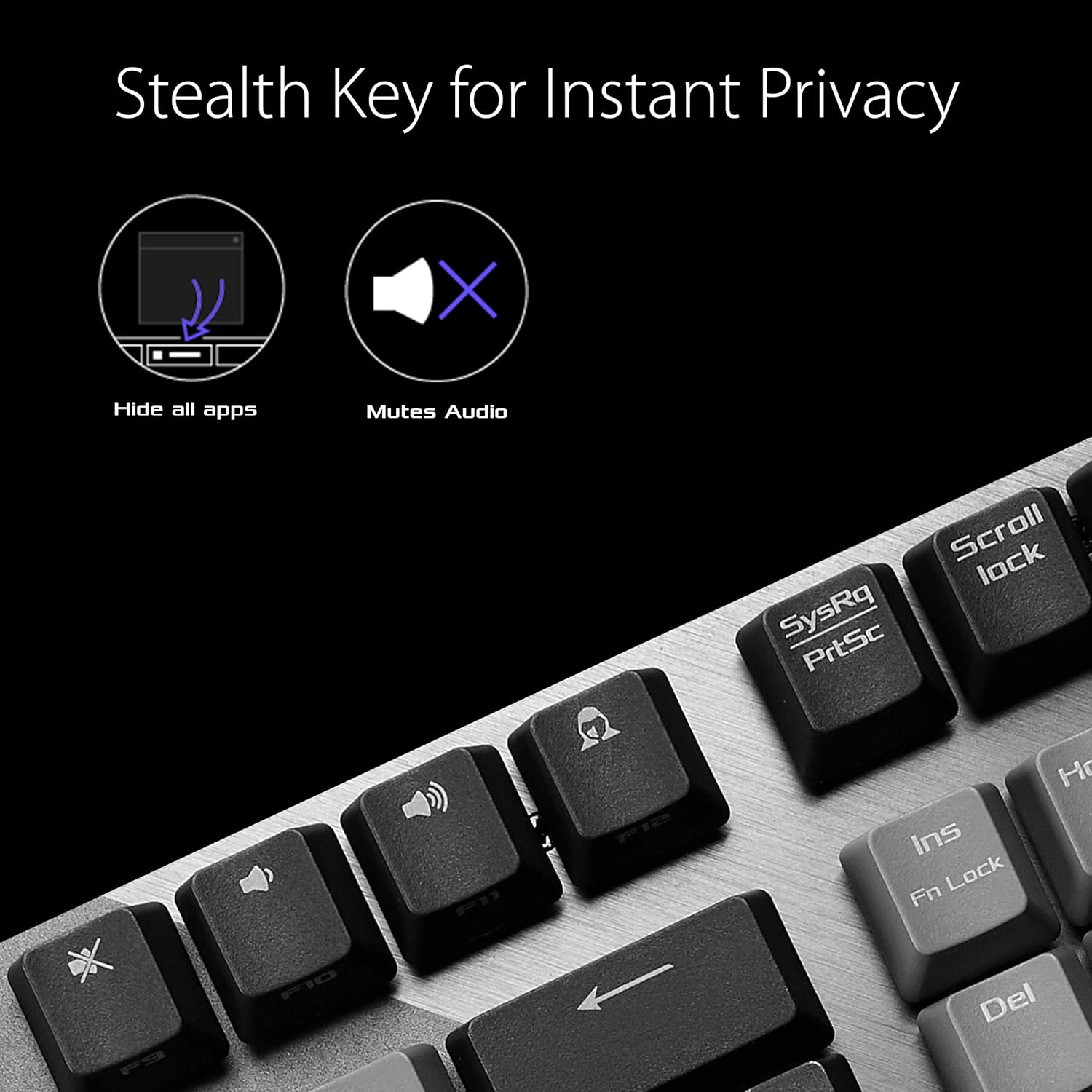 - Stealth key: Tap to hide all apps and mute audio for instant privacy; tap again to play on