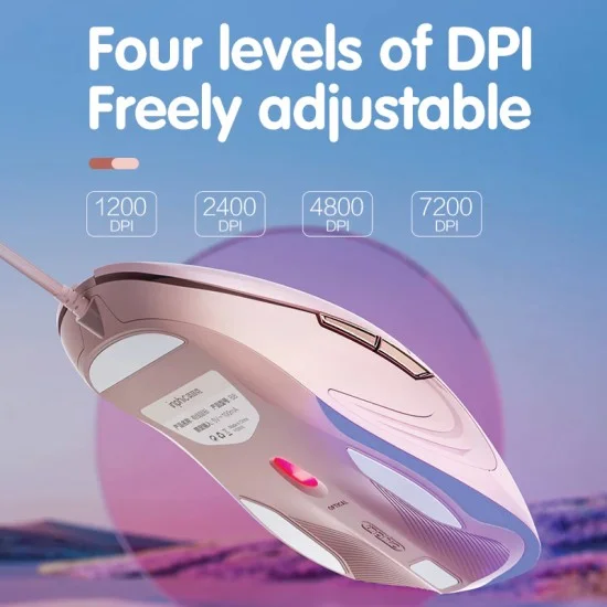 • High-Precision Tracking: Equipped with an advanced optical sensor supporting four default DPI levels (1200/2400/4800/7200) for on-the-fly sensitivity adjustment.