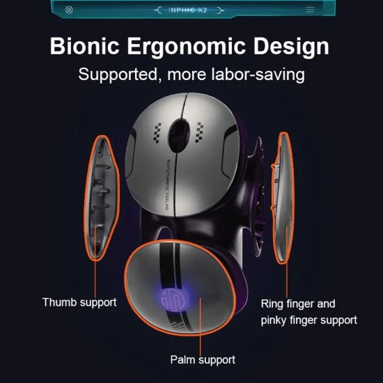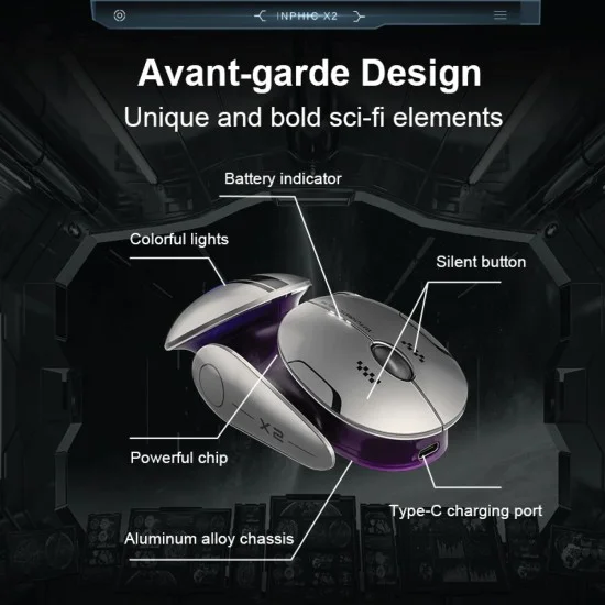 Step into the future with the Inphic X2, an “Interstellar Theme” wireless mouse that redefines desktop style. Crafted with a premium two-spray, two-bake process for a durable, metallic texture, the X2 features a striking split-tail mecha design and vibrant RGB breathing lights. Beyond its looks, the X2 is a productivity beast, offering Tri-Mode connectivity to switch between your PC, laptop, and tablet instantly. With its silent-click buttons and high-precision optical sensor, you can maintain peak performance in any environment without making a sound.