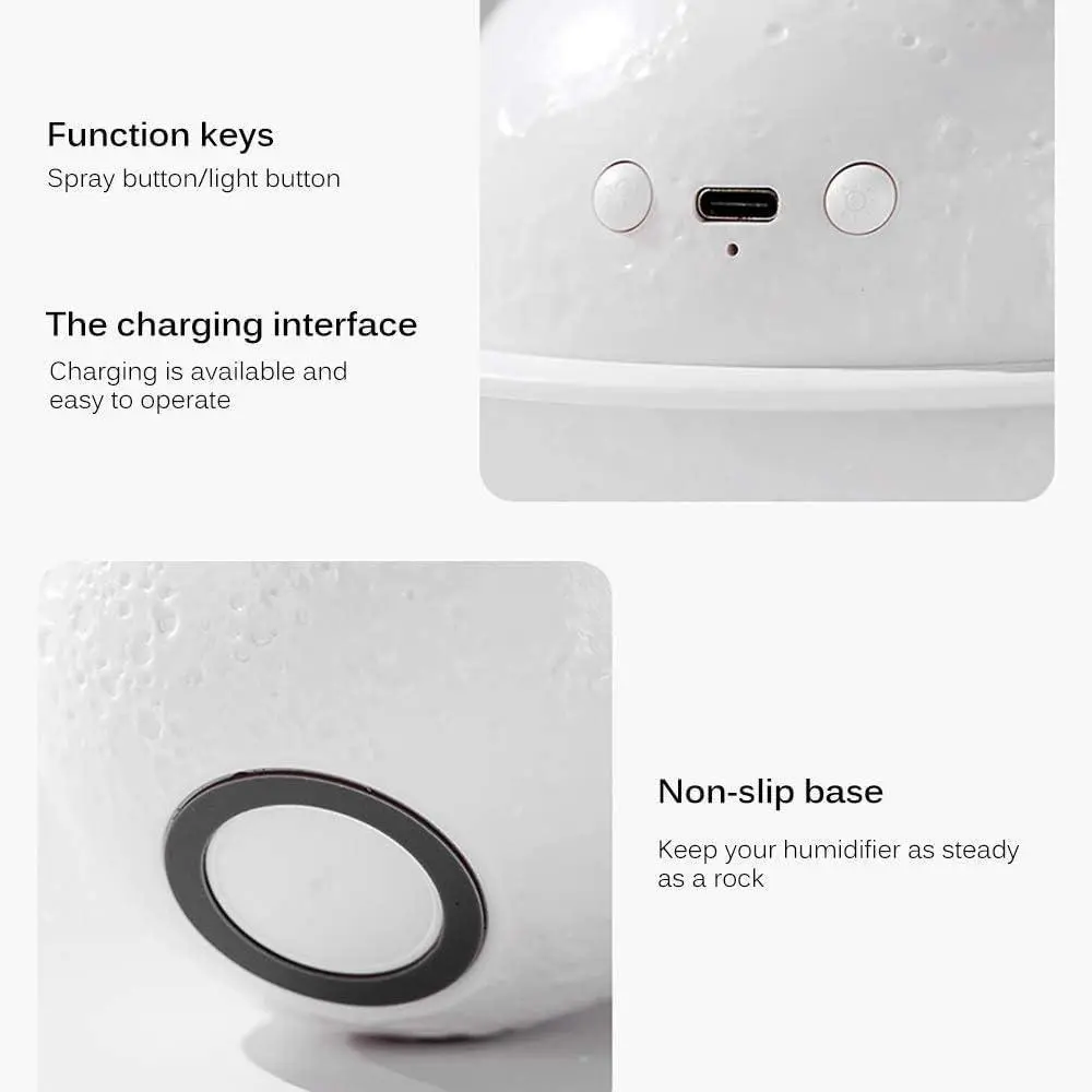 - Crafted for easy transport, the Planet Humidifier is USB-powered and lightweight, allowing you to take it along on trips or move it effortlessly from one room to another. Simply connect it to any USB port or power bank for immediate humidity wherever you go. Its intuitive design and straightforward operation ensure that you can enjoy the advantages of humidification and vibrant ambient lighting anytime, anywhere.